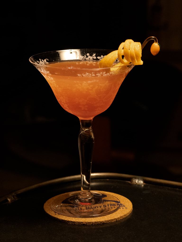 Shake, fine-strain into chilled glass, garnish with orange zest.