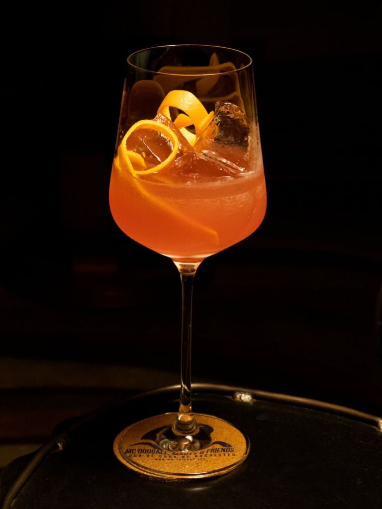 Rooty-tooty, fresh and fruity—the cocktail stars aligned for this one, and it’s a great cocktail for sparkling wine lovers. I have some blood orange juice, and Nancy *somehow* came by a bottle of Cava rosé. I may or may not have bought that for her with ulterior motives; I can neither confirm nor deny.