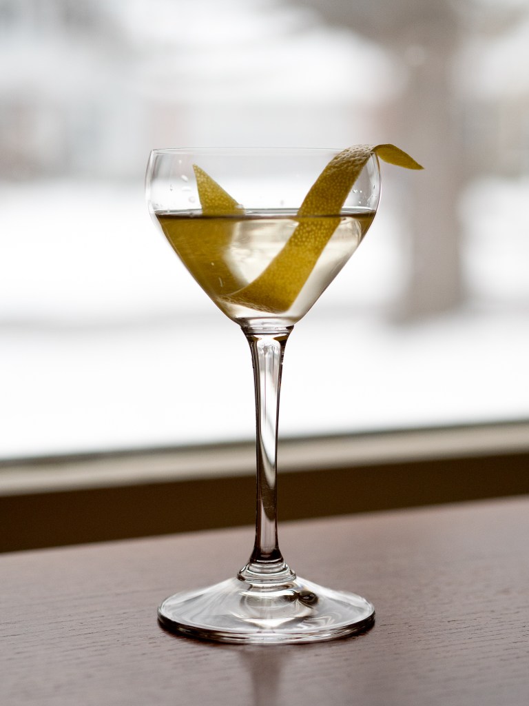 Stir the ingredients with ice in a mixing glass and strain into chilled Nick & Nora glass. Garnish with a twist of lemon.