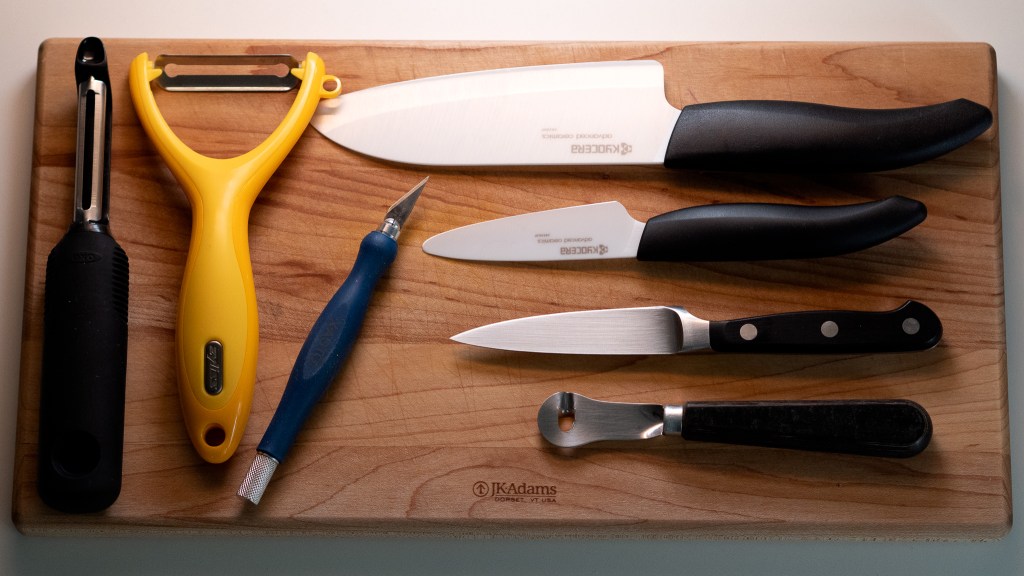Word to my cocktail fanatic friends: Get yourself an X-Acto knife, a sharp paring knife (I love my Kyocera ceramic knives for this), and a smallish cutting board. Then get a bunch of citrus fruit to practice with, search for “making cocktail garnishes” on YouTube and go to town.