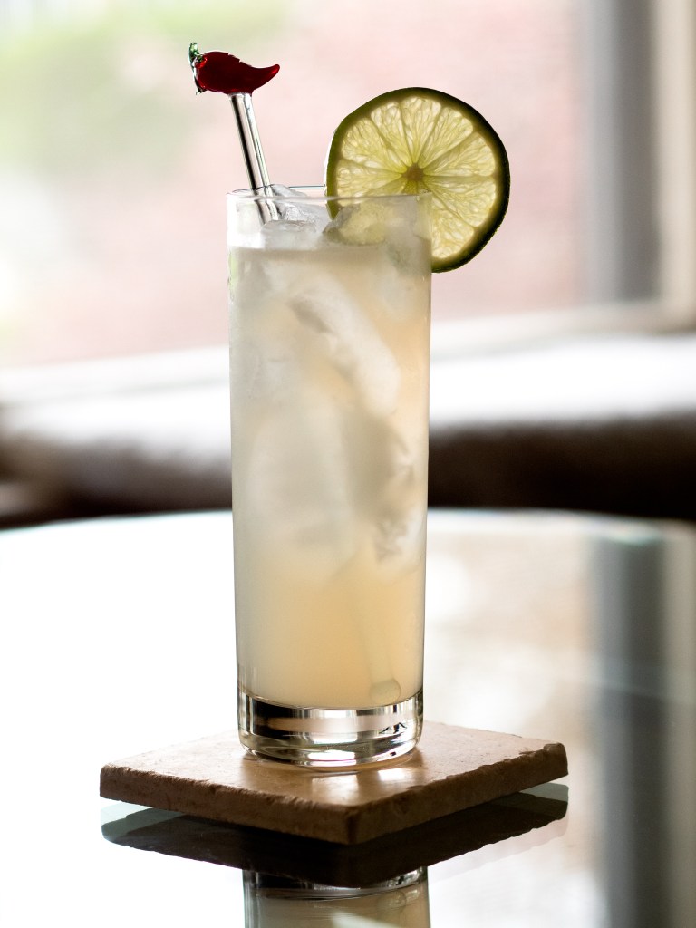 Place a swizzle stick in the glass and stir once gently to integrate the sparkling water. Garnish with a wedge or wheel of lime; consider sipping the drink through a reusable straw.