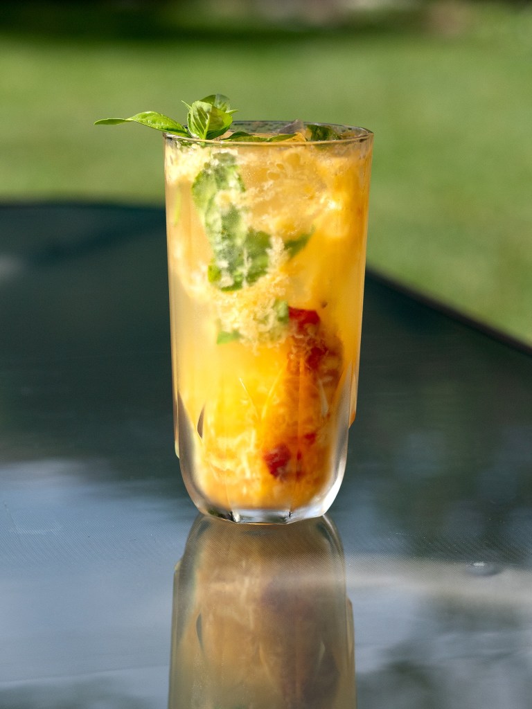 Fresh fruit is a slave driver. (“USE ME! NOW! OR I’LL ROT ON YOU!!”) Peaches are in season right now, and a handful of ripe, luscious Lori Ann peaches is really nagging at me, so bring on the smashes and crushes. Here are two delicious summer cocktails—one with gin, the other with bourbon. File them under “Serve with a spoon,” because you won’t want to leave a speck of peach behind.