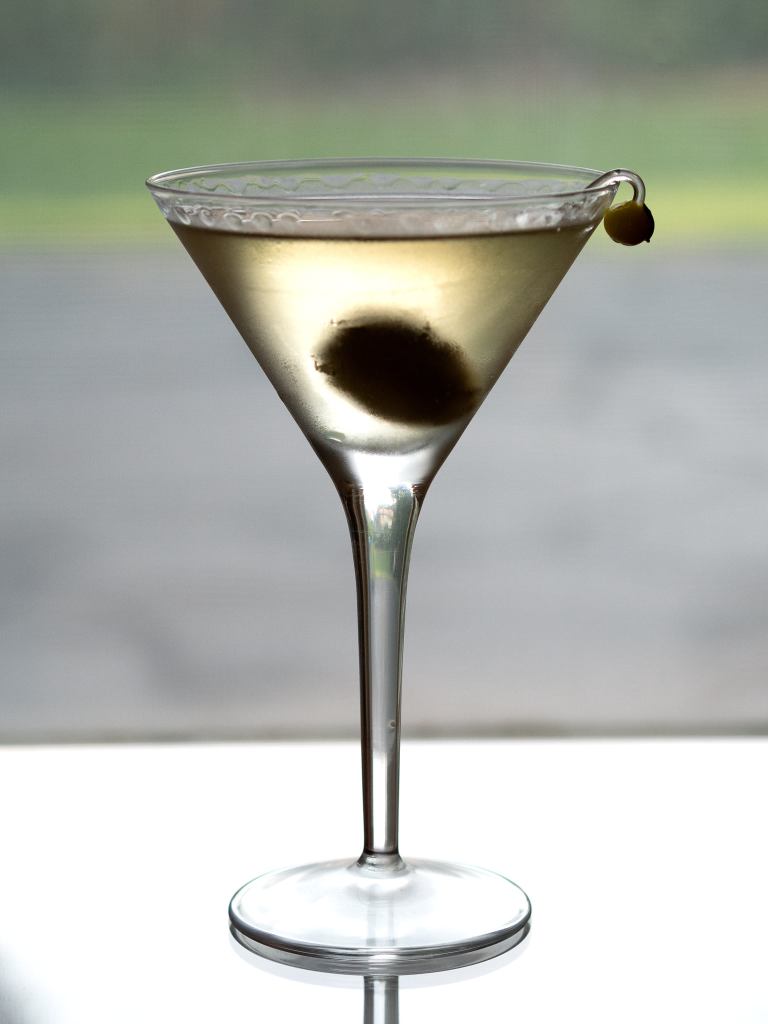 Stir ingredients with ice, strain into chilled Martini glass, garnish with blue- or gorgonzola cheese stuffed olive.